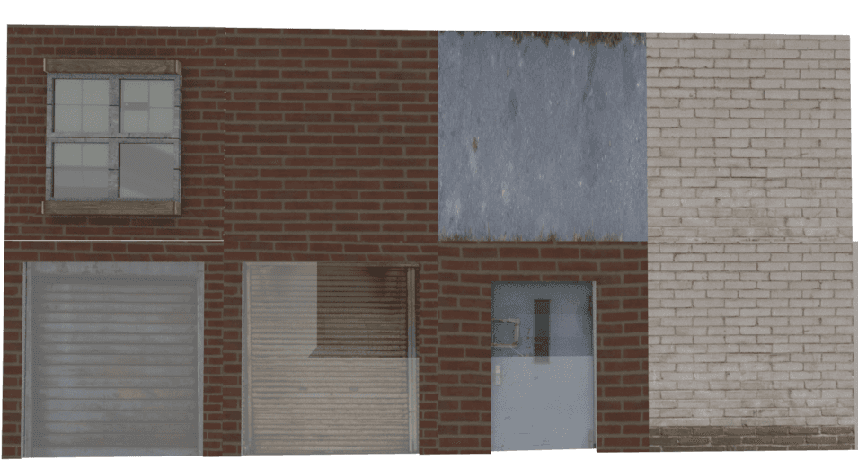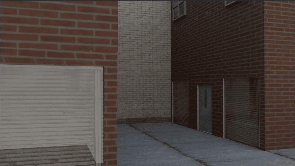 This was me experimenting with modular modeling. Modular modeling involves using a bunch of different components and using them to create a more complex environment, model, or scene. For instance, I took a bunch of planes and gave them 8 different, varying wall textures (window, wall, concrete, wall 2, garage gate, garage gate 2, door, and wall 3) to create a scene of an alleyway. This reminded me a lot of tile mapping when creating maps in Unity. This was good for really easy building creation, and this method would go on to be used in Bobert's Mad Dash to create the buildings of Penguin City!